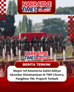 ww.narrativetimes.com.ǁJawa Barat,5 April 2026-Matahari pagi di Bandung, Minggu (5/4/2026) terasa lebih redup di balik gerbang Taman Makam Pahlawan (TMP) Cikutra. Keheningan bukan sekadar ketiadaan suara, melainkan bentuk penghormatan terdalam seorang prajurit yang menuntaskan janji setianya pada negara melintasi batas Samudera. Sekitar pukul 08.45 WIB, derap langkah tegap prajurit Kopassus memecah kesunyian. Di atas pundak mereka,…