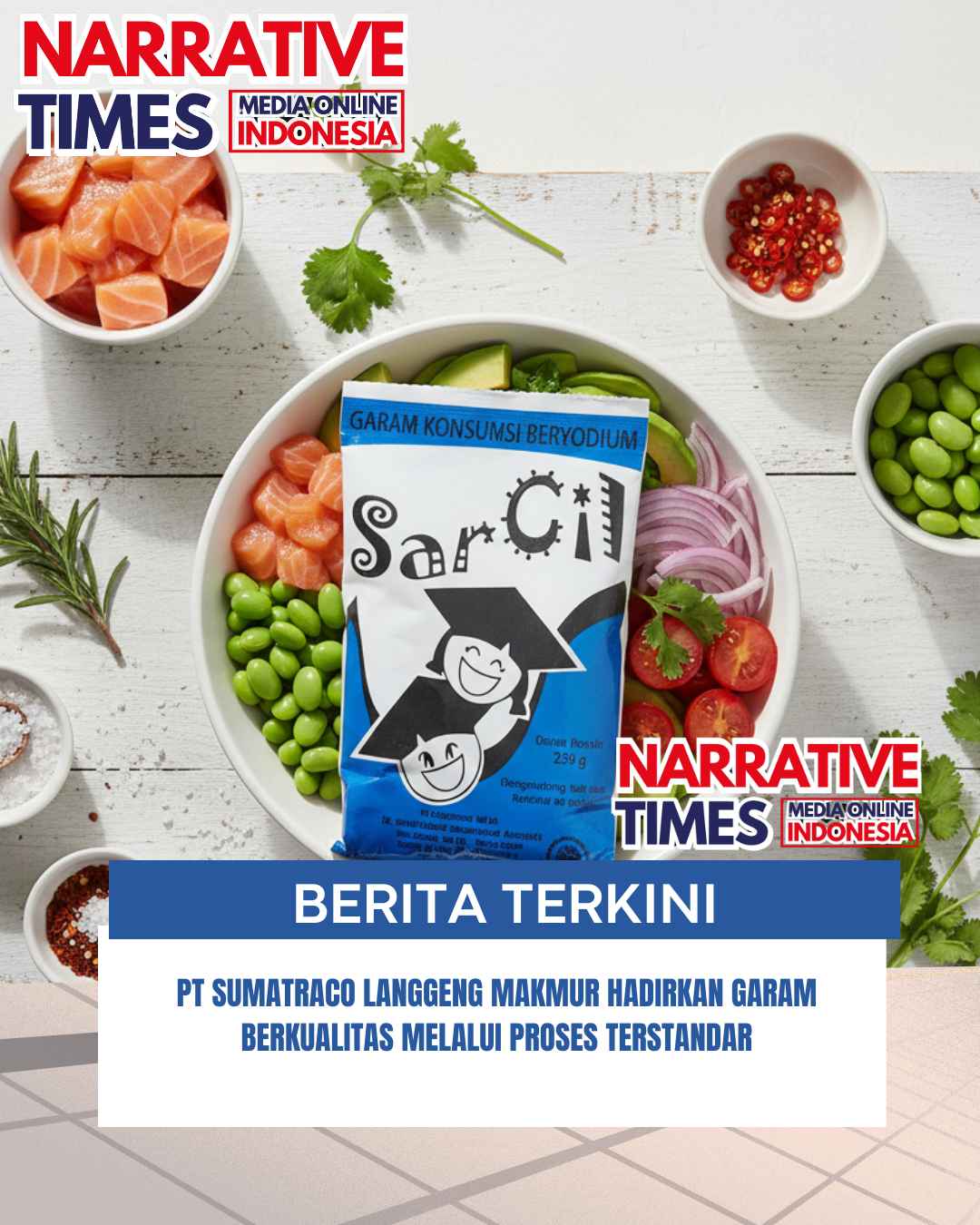 ww.narrativetimes.com.ǁSurabaya,31 Desember2025-PT.Sumatraco Langgeng Makmur terus memperkuat posisinya sebagai perusahaan nasional yang bergerak di bidang produksi dan pengolahan garam dengan menghadirkan produk berkualitas tinggi melalui proses produksi yang terstandar dan berkelanjutan. Berbasis di Surabaya, perusahaan ini berkomitmen memenuhi kebutuhan pasar domestik sekaligus memperluas jangkauan ke pasar internasional, khususnya Eropa.